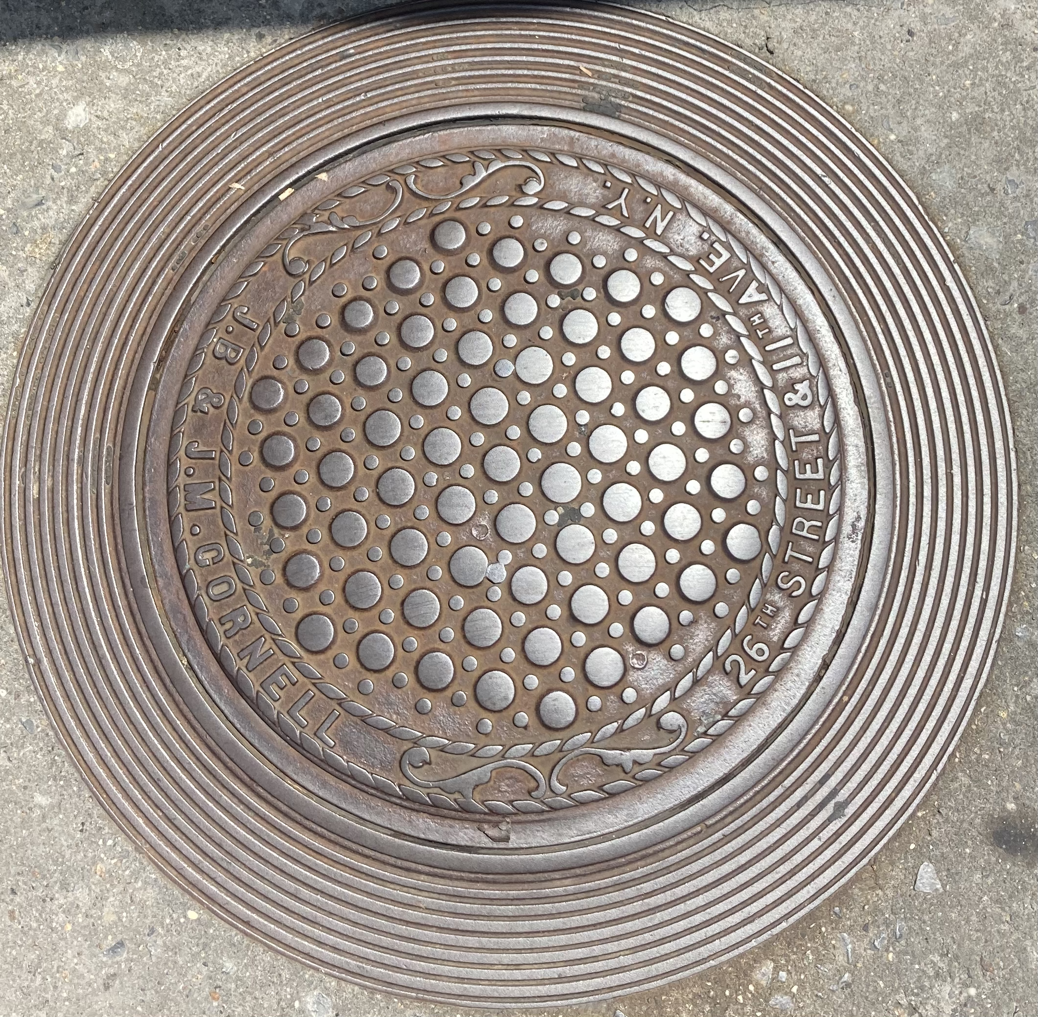 I became interested in this after seeing a photo of a very attractive manhole cover in New Orleans. As much as I like looking up as I move around the city, I have to look down too, being mindful of tripping hazards, and sometimes I’m rewarded with, of all things, an interesting manhole cover.