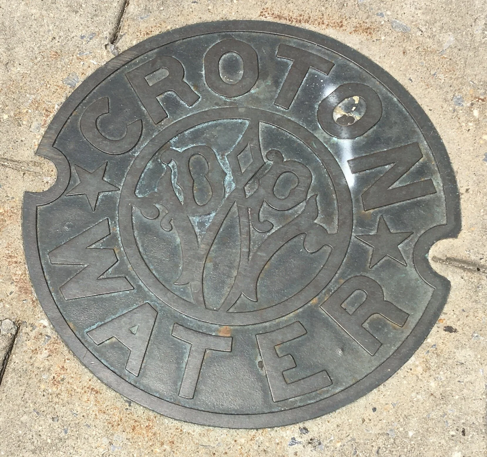 These aren’t manhole covers but three of the roundels in the walkway on the High Bridge between Manhattan and the Bronx, detailing its history.