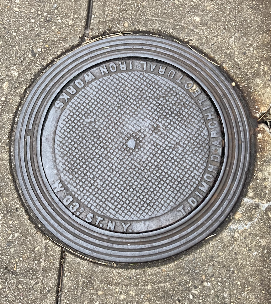 Sewer manhole, Bobby Wagner Walk at East 91 Street, Manhattan.